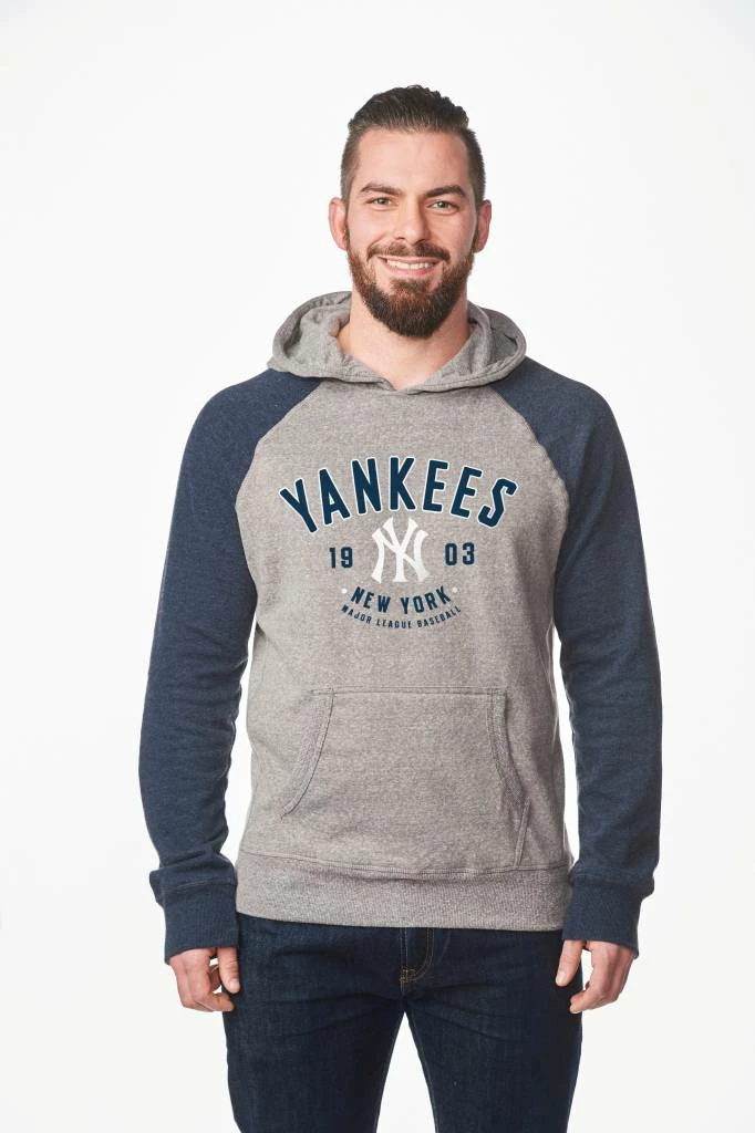 Ramp up your style in this Campus Crew Color Block hooded sweatshirt. Pull-over sweatshirt features a blend of soft and durable fabrics, raglan color blocked long sleeves, an attached drawstringhood, a grey heathered body, and a front pouch pocket. Show your true colors with this Yankees Block Hooded Sweatshirt.