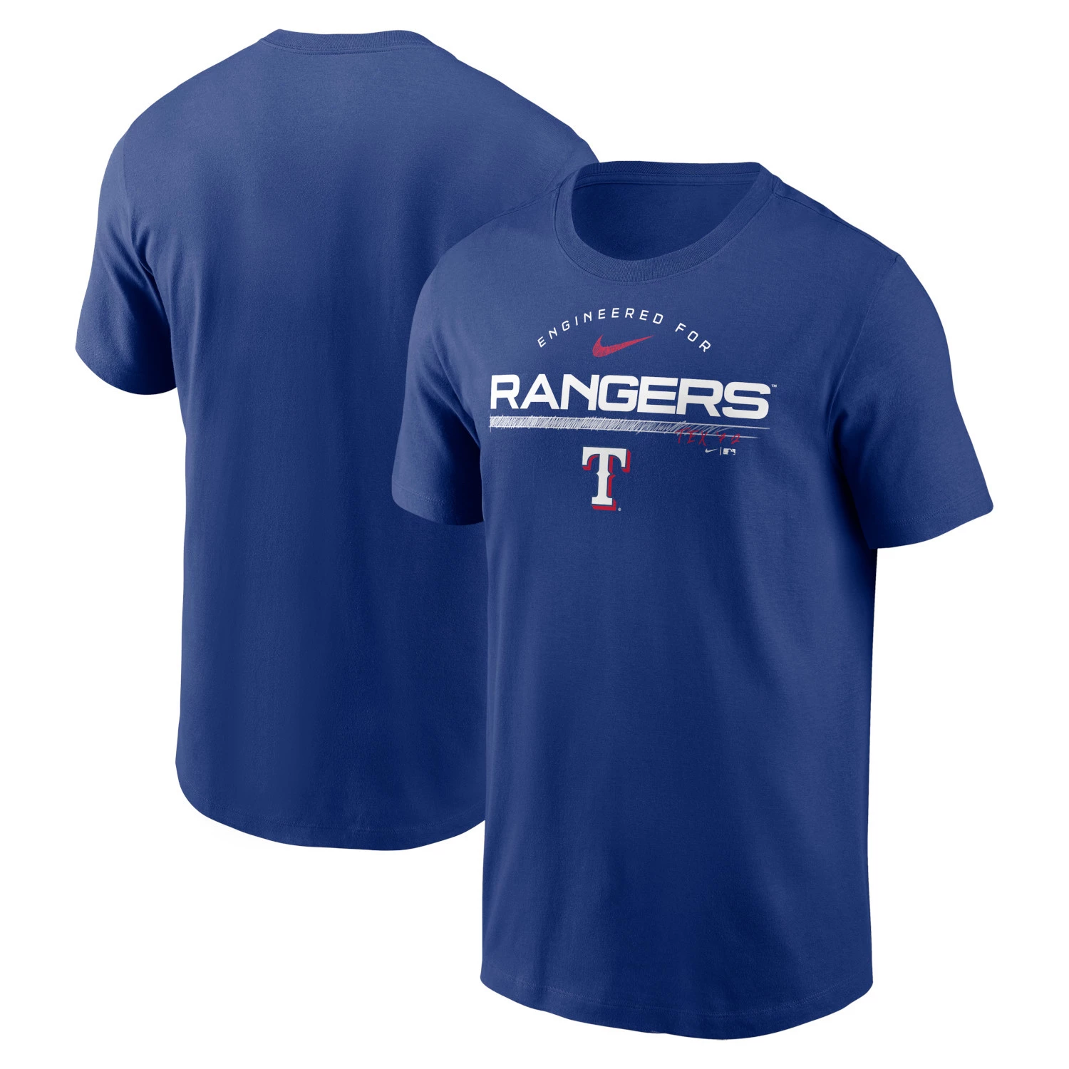 Upgrade your collection of official Texas Rangers gear by picking up this Team Engineered T-shirt from Nike. It features moisture-wicking Dri-FIT technology, which is sure to keep you cool, dry and comfortable throughout every wear. The relaxed feel of this Texas Rangers tee is sure to quickly make it a staple in your game day rotation.